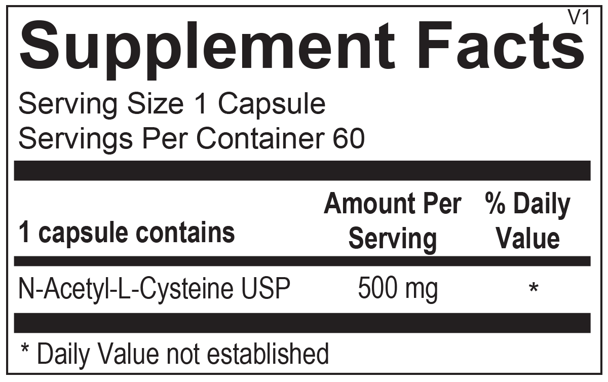 Each capsule of the N-Acetyl Cysteine formulation includes 500 mg of this versatile amino acid.