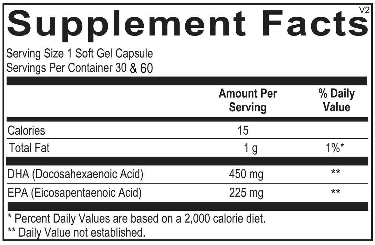 Orthomega® V provides 450 mg of docosahexaenoic acid (DHA) and 225 mg of eicosapentaenoic acid (EPA) per soft gel as re-esterified triglycerides, the preferred form for superior absorption. Vitamin E (as mixed tocopherols) and rosemary extract are also added to ensure maximum purity and freshness. Orthomega® V is a unique fish oil alternative that contains the highest available concentration of vegan-sourced EPA and DHA. This formula is independently tested to ensure potency and purity.